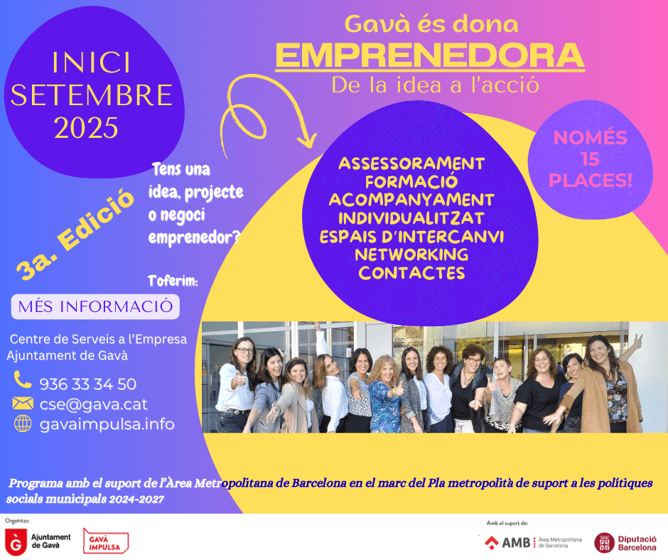 Si necesitas más información o quieres sumarte a este programa contacta con el Centro de Servicios a la Empresa de Gavà en el 93 633 34 50 o en el correo cse@gava.cat . Las inscripciones para participar estarán abiertas hasta el 24/09/2025.