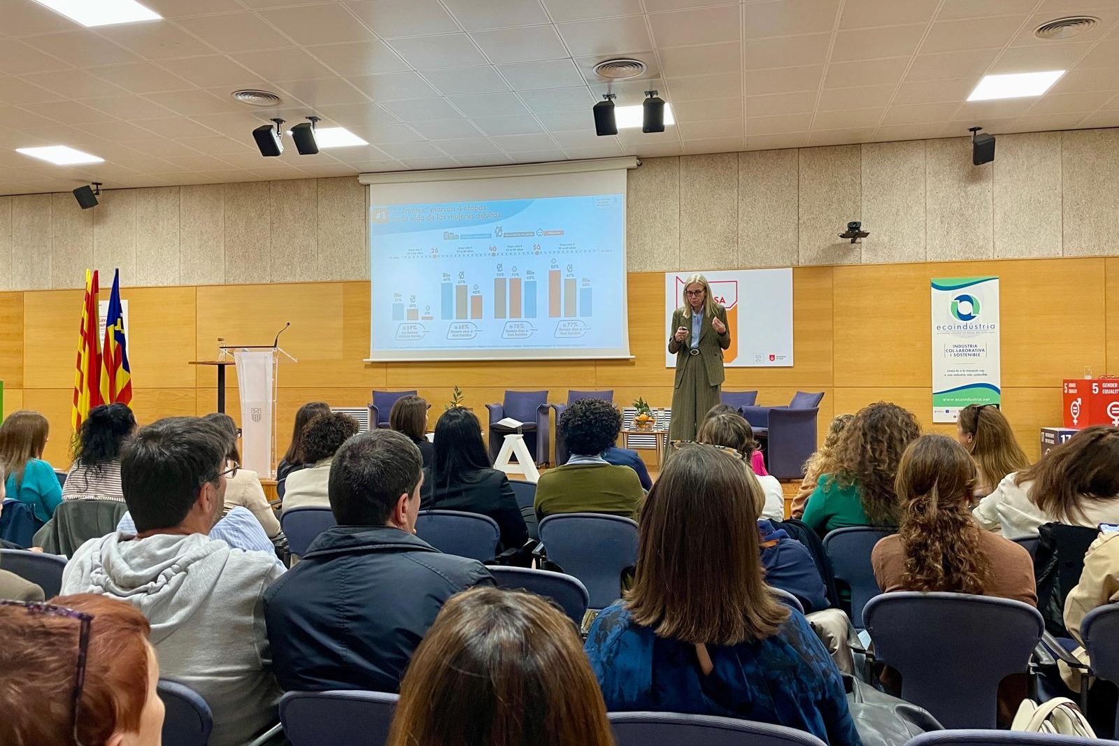 La jornada va comptar amb la ponència de Laura Sagnier, economista, investigadora i autora especialitzada en igualtat de gènere, que va presentar dades sobre la realitat laboral i vital de les dones a Espanya.